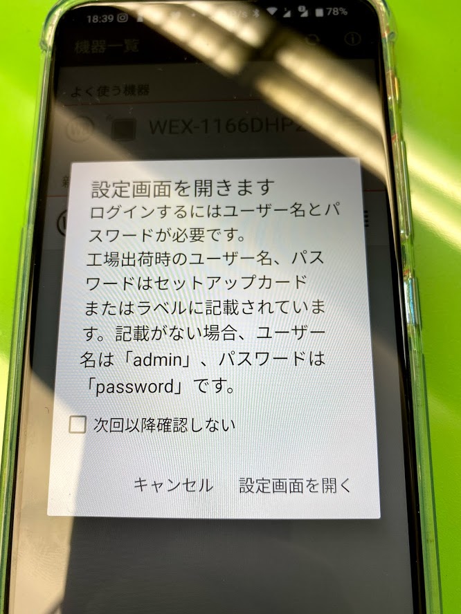 1166DHPとスマホの接続に必要なパスワードの設定をします。