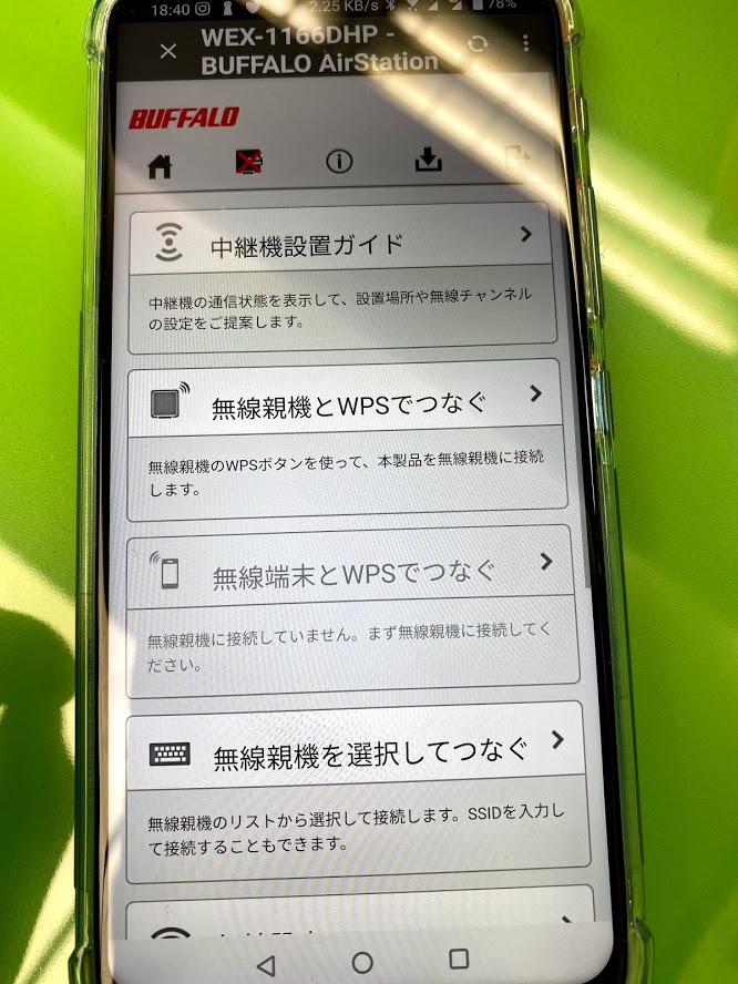 バッファロのWi-Fi中継機を子機に、