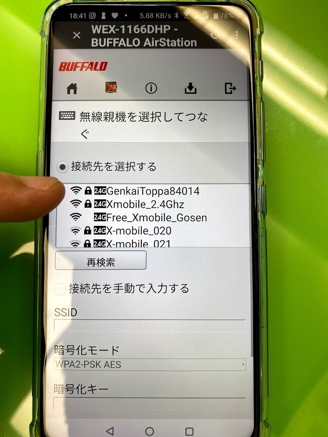 無線親機を選択して繋ぐをタップ。