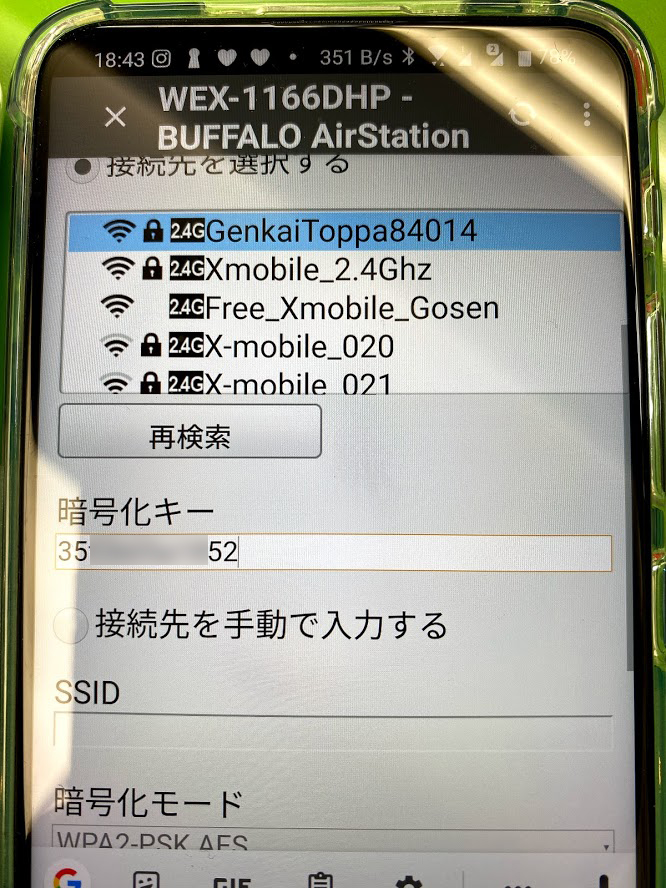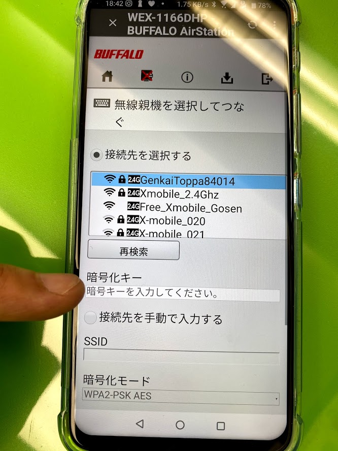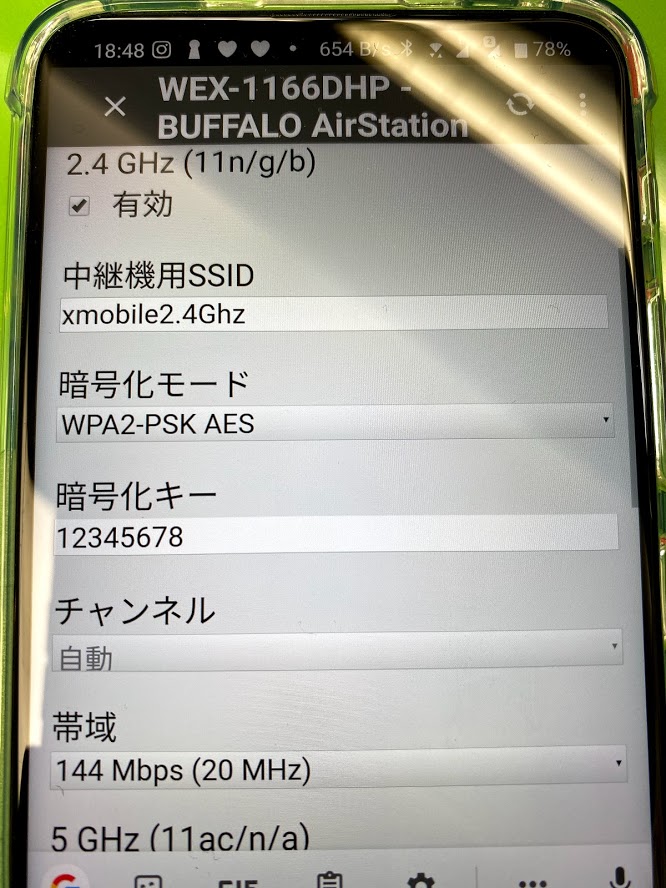 次は、中継機1166DHPのSSID(スマホに出てくるWi-Fi名と)