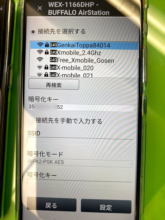 「xmobile2.4Ghz」を選択すると聞かれる