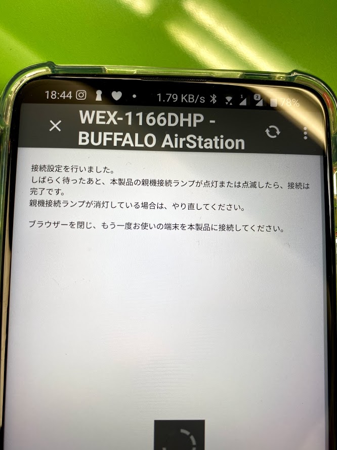 限界突破Wi-Fiの中継機になる事を確認しました。