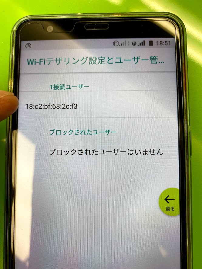 限界突破Wi-Fiの設定で、接続できているか確認します。