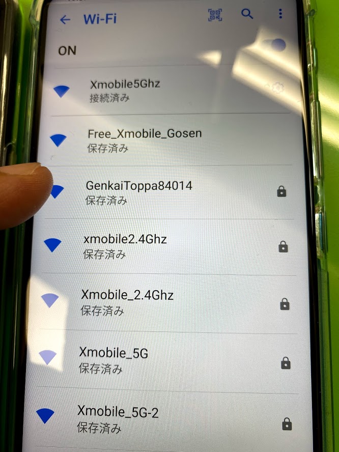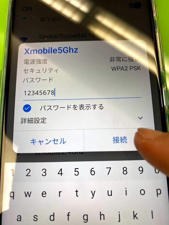 先程設定した、「Xmobile5Ghz」をタップ。