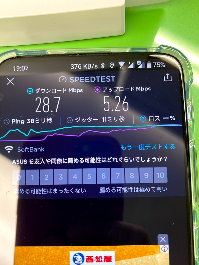 4G→限界突破Wi-Fi→中継機→スマホのスピード測りましたが