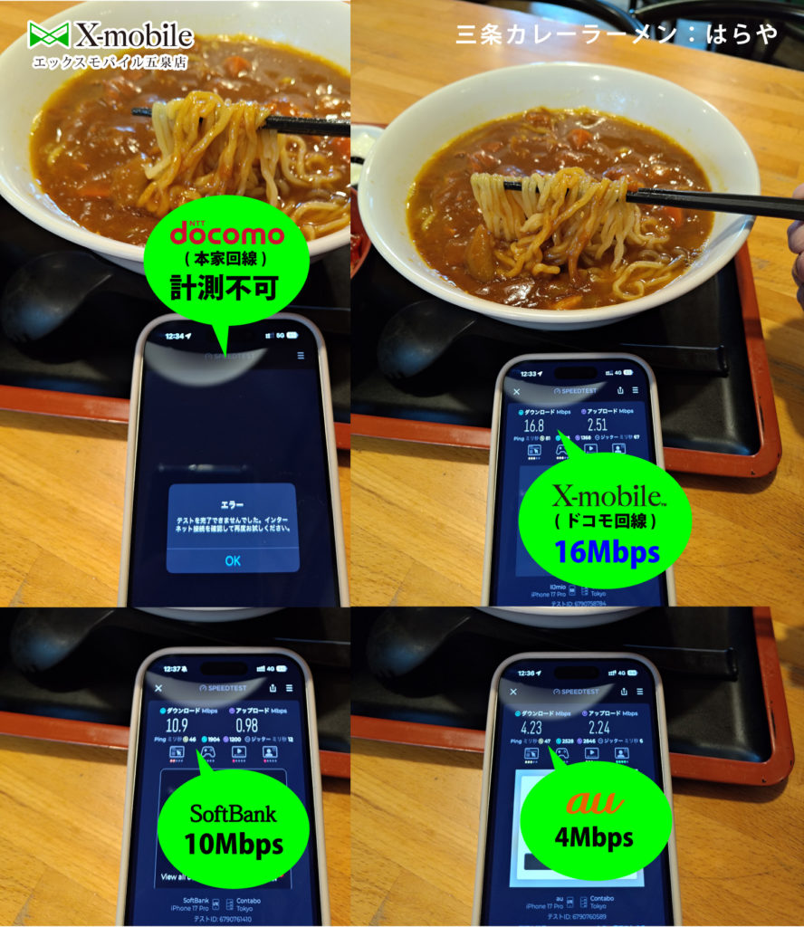 ネット速度比較は、ドコモはエラーして計測不可。