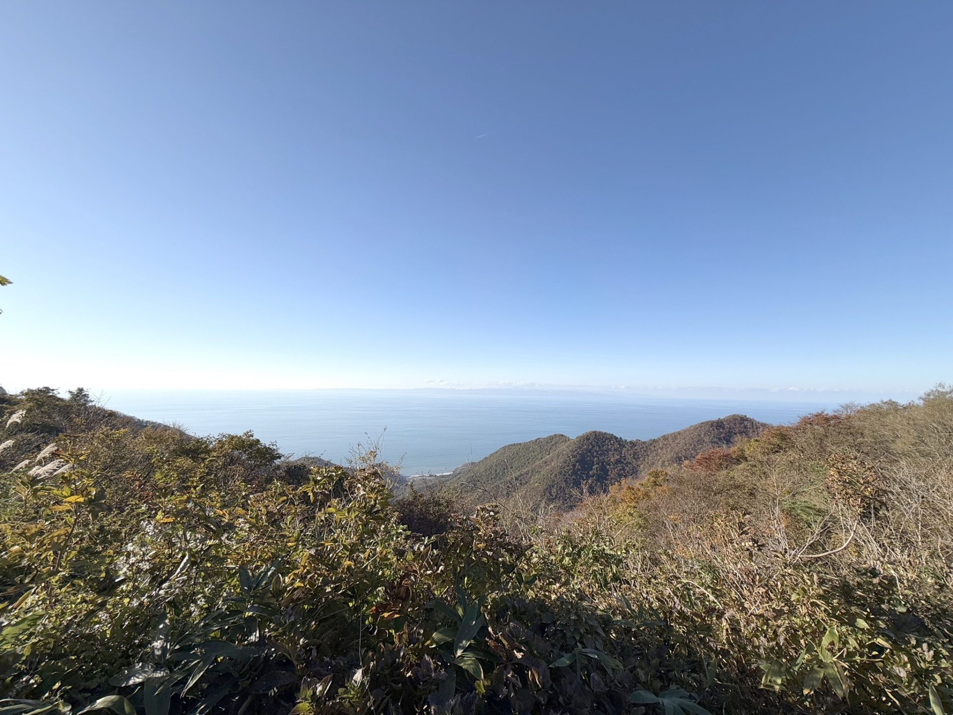 世界遺産に登録された「佐渡ヶ島」が見える。