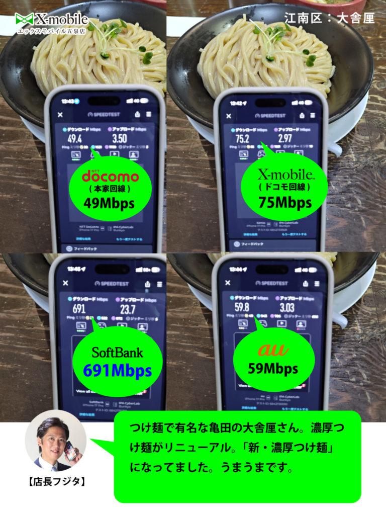 (速い)SB > Xモバイル > au > ドコモ(遅い)