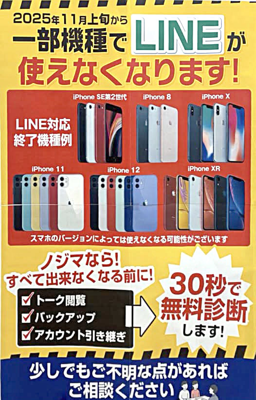 このポスターにある機種はまだまだ現役でLINEは使えます。