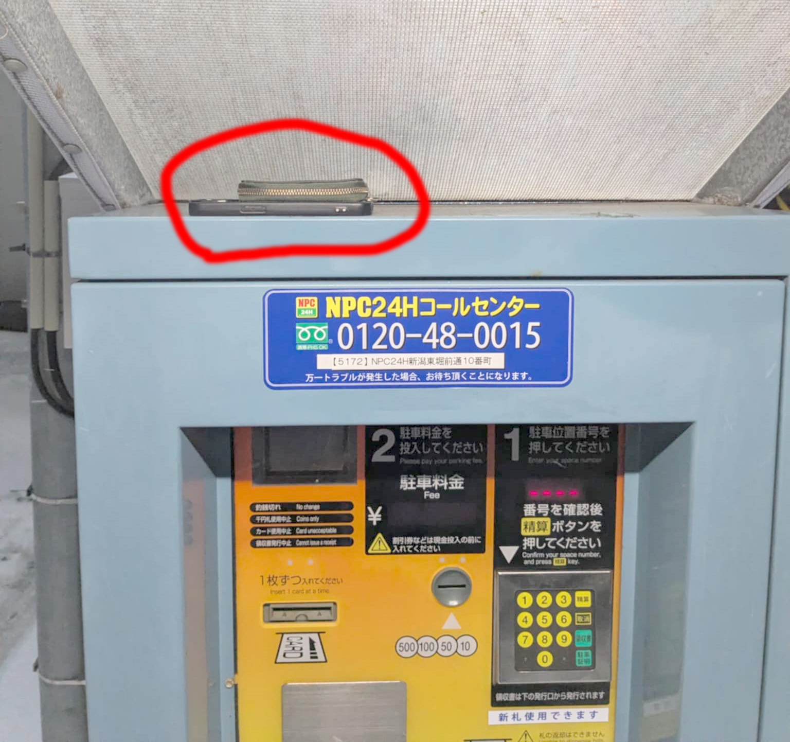拾った人がいて、精算機の上に置いたみたい。