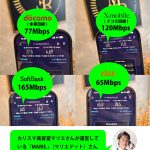 速度テスト。 ついに4社の通信をインストールした藤田の携帯。 SoftBankが一番速度が出ているが、 田舎では電波が弱いという痛しかゆし。