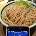 【極み・つけ麺:三宝亭】麺中央に溝掘りがあり、濃厚スープがよく絡みます。スマートWi-Fi(au回線)は21M/秒。