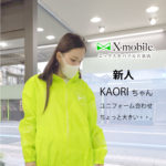 ハーフ系美人の新人KAORIちゃん。スタッフジャンパーとポロシャツのサイズ合わせ。スレンダーなのでデカすぎた。