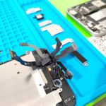画面が割れて画面が勝手に電話を始めたiPhone11。セロテープが痛々しい。1時間後に元通りに。電池も弱っていたので交換しました。五泉市Nさんありがとうございました。