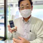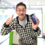 5/1から更にお得になる「シン・プラン」へ変更手続きに来店の五泉市半田さん。テレビのナレーションや司会業をしています。家族全員Xモバイル。更にお安くなりました。