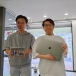 【MacBookProの電池交換】㈱新潟管財企画の落合部長、Macの電池交換に来店。たまたま居合わせた㈱アルビックの片山社長。知り合いでした。持っている写真は遺影ではありません(笑) 落合部長・片山社長ご来店ありがとうございます。