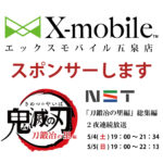 【今日放送の鬼滅の刃】鬼滅の刃総集編2夜連続放送でXモバイル五泉店のCMが流れます。19:00スタート。放送局は「NST」皆さん見て下さいね~(