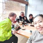 新潟市東区、美容室・理容室ハイタイムM社長夫妻。iPhone16eへ機種変更し丁度お昼。M社長のお誘いで近所の釜飯屋さん「釜飯めだかの里」さんへ。右下はめだかの里さんの女将いずみちゃん。M社長ありがとうございました