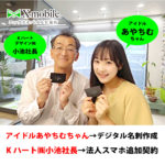 ご当地アイドルグループ「cana÷biss」カナビスの 「あやちむ」さん、デジタル名刺の噂を聞きつけ来店。 そのタイミングで来店のKハートデザイン㈱小池社長、 従業員追加で法人スマホの追加契約。 2人とも知り合いでした(